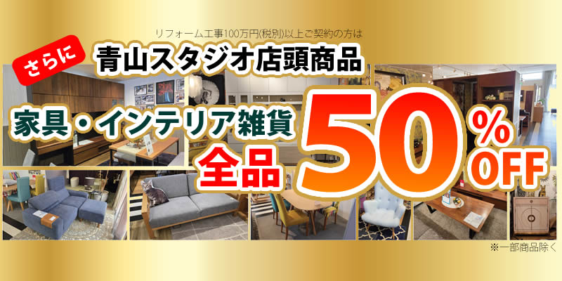 ・さらに 家具・インテリア雑貨 青山スタジオ店頭商品全品50%OFF ※一部商品除く 送料別途
